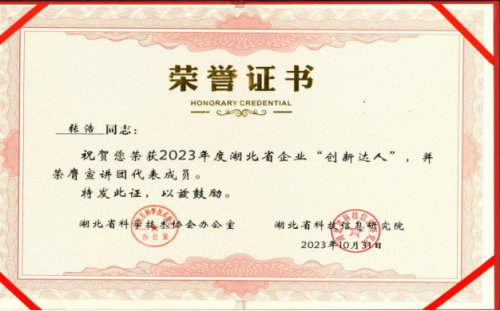 張浩同志榮獲2023年湖北省企業(yè)“創(chuàng)新達人”稱號